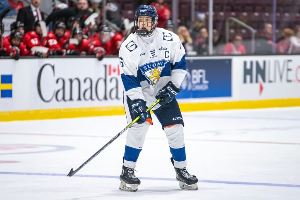 For just about his entire life, Aron Kiviharju (Minnesota Wild) has been the top Finnish defender in his age group. He’s as good as anyone at getting the puck out of the zone and controlling the game from the blueline. He’s great on the power play, can create high-end passes and plays a lot of minutes, too. The HIFK product was Finland’s captain a year ago, and they expect him to play a lot of essential minutes again this year.