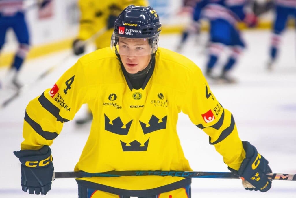 The Swedes left Ottawa Senators prospect Gabriel Eliasson off the roster, but they still wanted someone with size. That’s where 6-foot-4 defender William Håkansson comes in. He is already playing against men and doesn’t look out of place with his physicality. He’ll do whatever it takes to keep you from getting close to the net, even if it ultimately penalizes him in the process. Håkansson moves well and is a decent playmaker, so I don’t think he’ll turn into one of those big players who can’t do anything other than crush people.