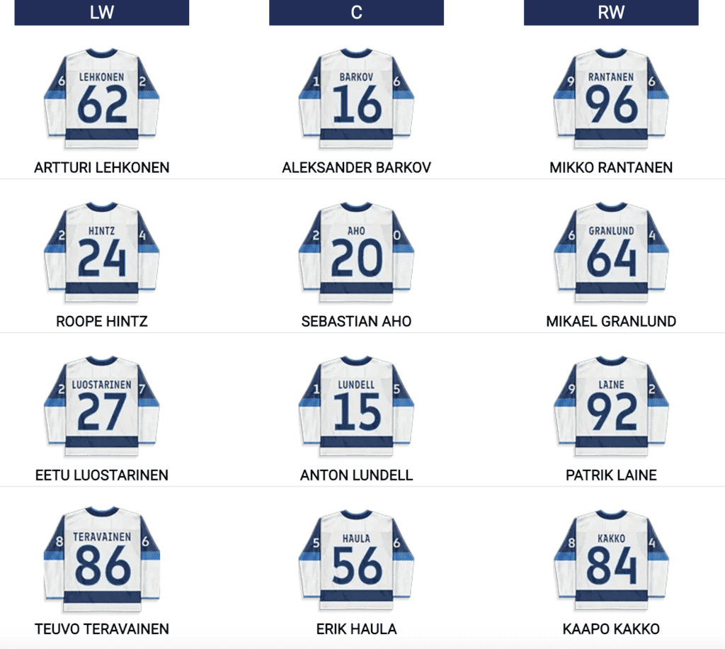 The team’s new-look second line of Roope Hintz, Sebastian Aho, and Mikael Granlund had a strong showing versus Finland, and was arguably the best unit from either side. Patrik Laine put together a much better game playing on the third unit, but the second line also clearly benefitted from Granlund overtaking Laine’s spot.