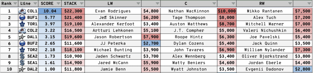 | Rodrigues – MacKinnon – Rantanen Lehkonen – Compher – Nichuskin Cogliano – Eller – O’Connor Malgin – Newhook – Nieto ——————————————————— Toews – Makar Girard – Byram Johnson – Hunt | Pitlick – Suzuki – Gurianov Hoffman – Drouin – Anderson Harvey-Pinard – Tierney- Ylönen Pezzetta – Richard – Belzile ——————————————————— Matheson – Savard Edmundson – Wideman Guhle – Kovacevic |