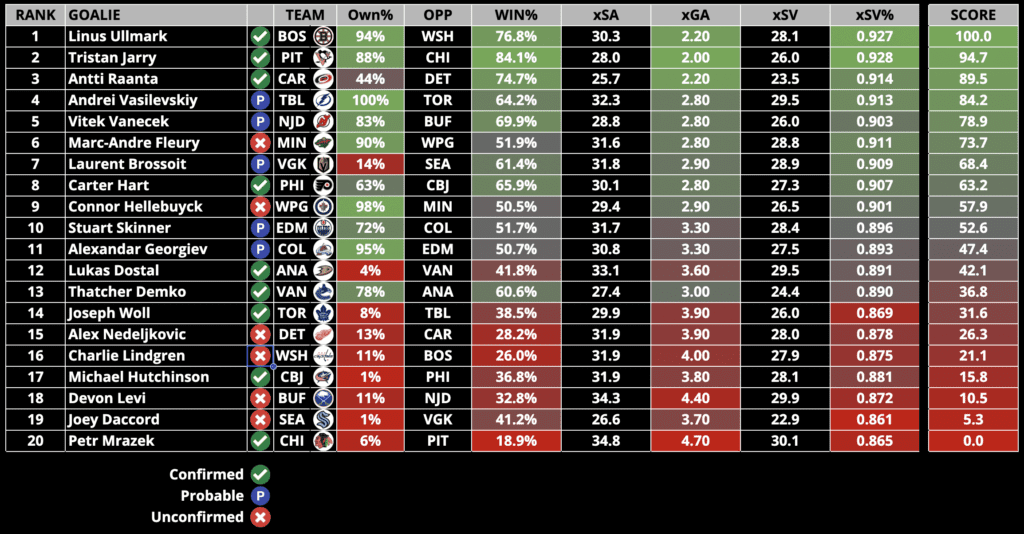 The Notebook includes everything you need to know to set your Season-Long and Daily Fantasy Lineups: including Injuries, Projected Lines and Pairings, Starting Goalie Rankings, and Value Picks (DFS).