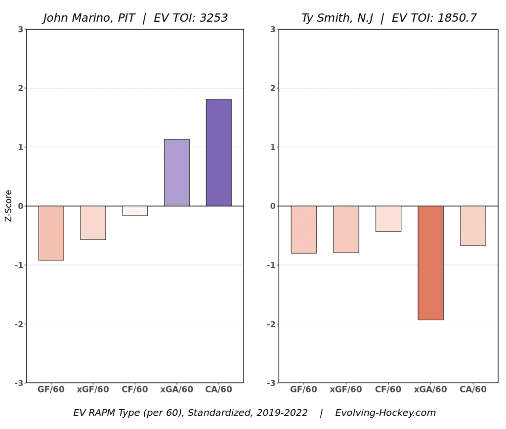 — Brady Trettenero (@BradyTrett) April 27, 2022The Penguins added Jan Rutta in free agency, making Marino a little more expendable. Acquiring Smith gives them a defenseman with potentially more upside and adding a third-round pick makes it a little more low-risk/high-reward for General Manager Ron Hextall. The trade also frees up $3.54M in cap space for the Penguins to sign a forward.