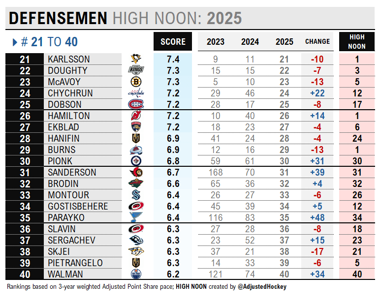 High Noon 2025: Ranking the NHL’s top 40 defensemen