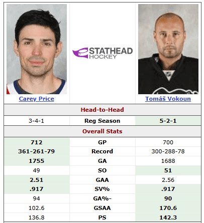 Yes, really. Believe it or not, Vokoun’s career body of work is nearly indistinguishable from Price’s.