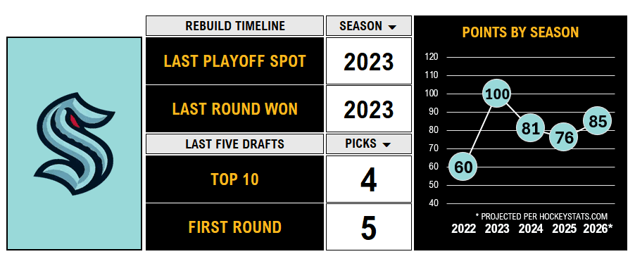 Bottom Line: With neither Beniers or Wright on star trajectories and a few onerous contracts to navigate, Seattle is going to have to start converting prospects to elite players soon in order to become Cup contenders.